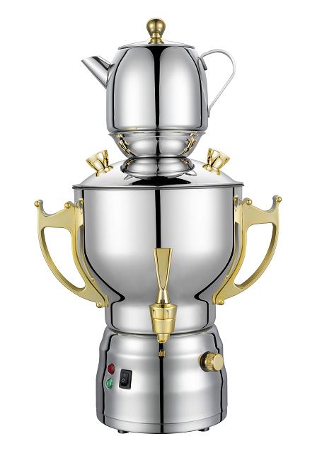 | Description£ºSingle Wall Stainless Steel Samovar All in stainless steel. golden and silver handle is choosiable. |